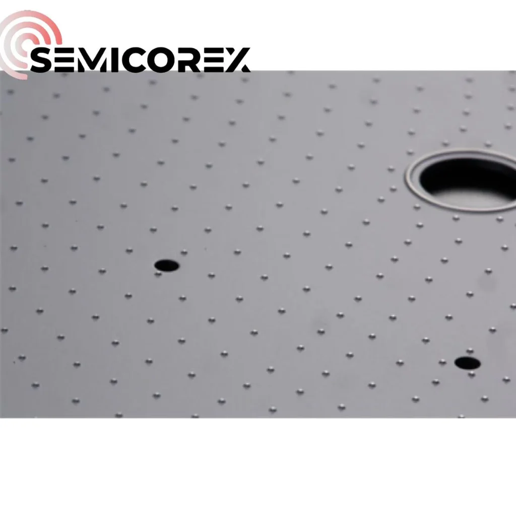 세미코렉스의 표면탄화규소핀 척에는 수많은 마이크론 크기의 범프가 배열되어 있습니다. 웨이퍼 뒷면과의 접촉은 범프에서만 발생하므로 접촉 면적이 최소화되어 불필요한 웨이퍼 긁힘, 입자 오염 및 마킹을 효과적으로 방지합니다.
